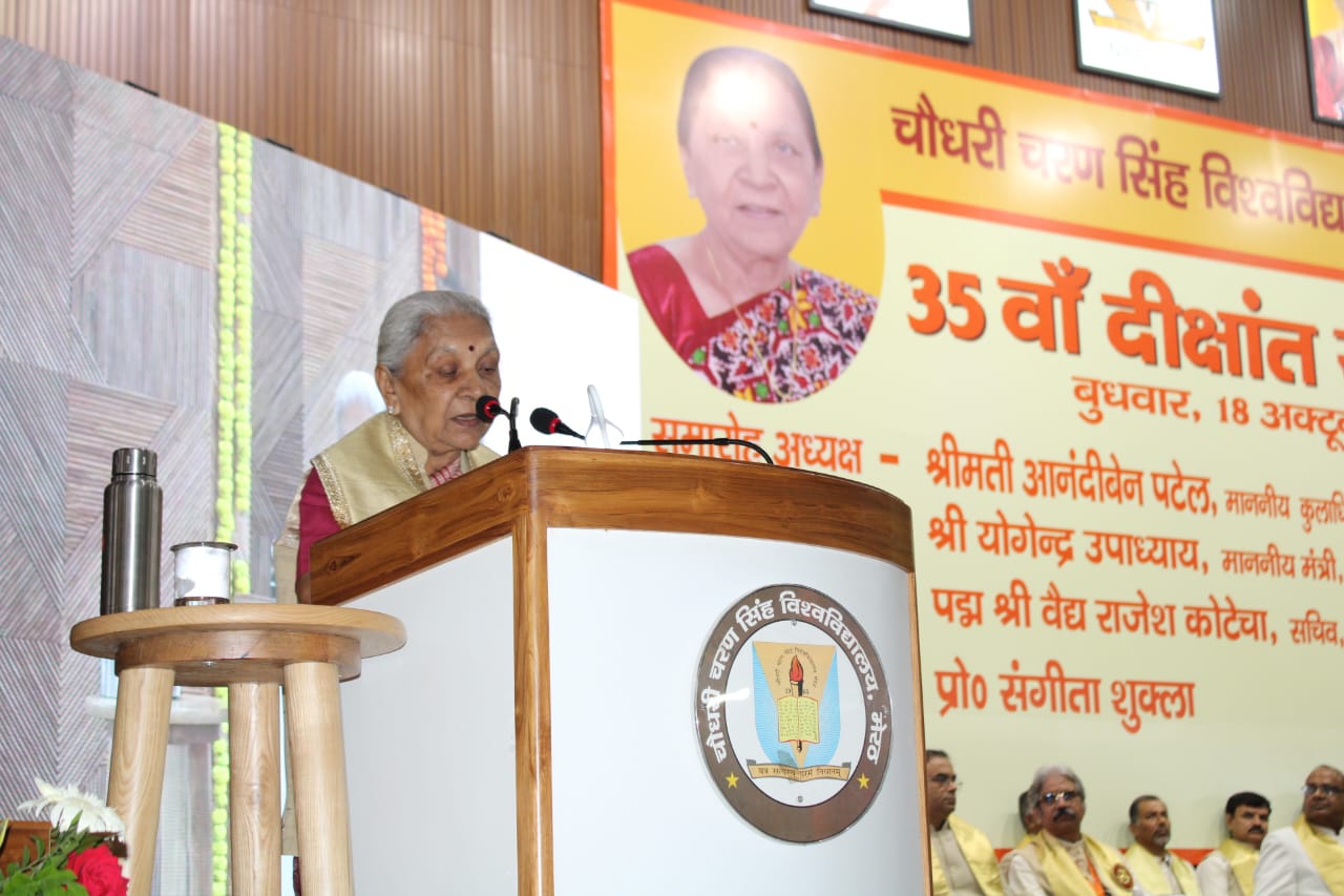 कुलाधिपति विश्वविद्यालय/राज्यपाल आनंदी बेन पटेल ने कहा कि इस विश्वविद्यालय का नाम पूर्व प्रधानमंत्री चौ चरण सिंह के नाम पर रखा गया है। भारत के इतिहास में मेरठ का स्थान सिर्फ एक शहर का नहीं है बल्कि मेरठ हमारी संस्कृति, हमारे सामर्थ्य का महत्वपूर्ण केन्द्र रहा है। मेरठ क्षेत्र ने रामायण, महाभारत काल से लेकर जैन तीर्थंकरों, पंच प्यारो में से एक भाई धर्म सिंह ने अपने देश की आस्था को ऊर्जावान किया है। मेरठ हॉकी के खिलाडी मेजर ध्यानचंद की कर्मस्थली भी रहा है। उन्हीं के नाम पर सरकार द्वारा खेल विश्वविद्यालय का निर्माण कराया जा रहा है। मेरठ खेल के सामान का बहुत बडा बाजार है तथा मेरठ को भारत का खेल शहर भी कहा जाता है। मेरठ के आर्थिक एवं सामजिक महत्व को देखते हुये सरकार द्वारा आरआरटीएस एवं एयरवे विकसित किया जा रहा है, जिससे यहां के उत्पाद देश के विभिन्न क्षेत्रो के साथ-साथ विदेशों में भी आसानी से पहुंचेंगे।